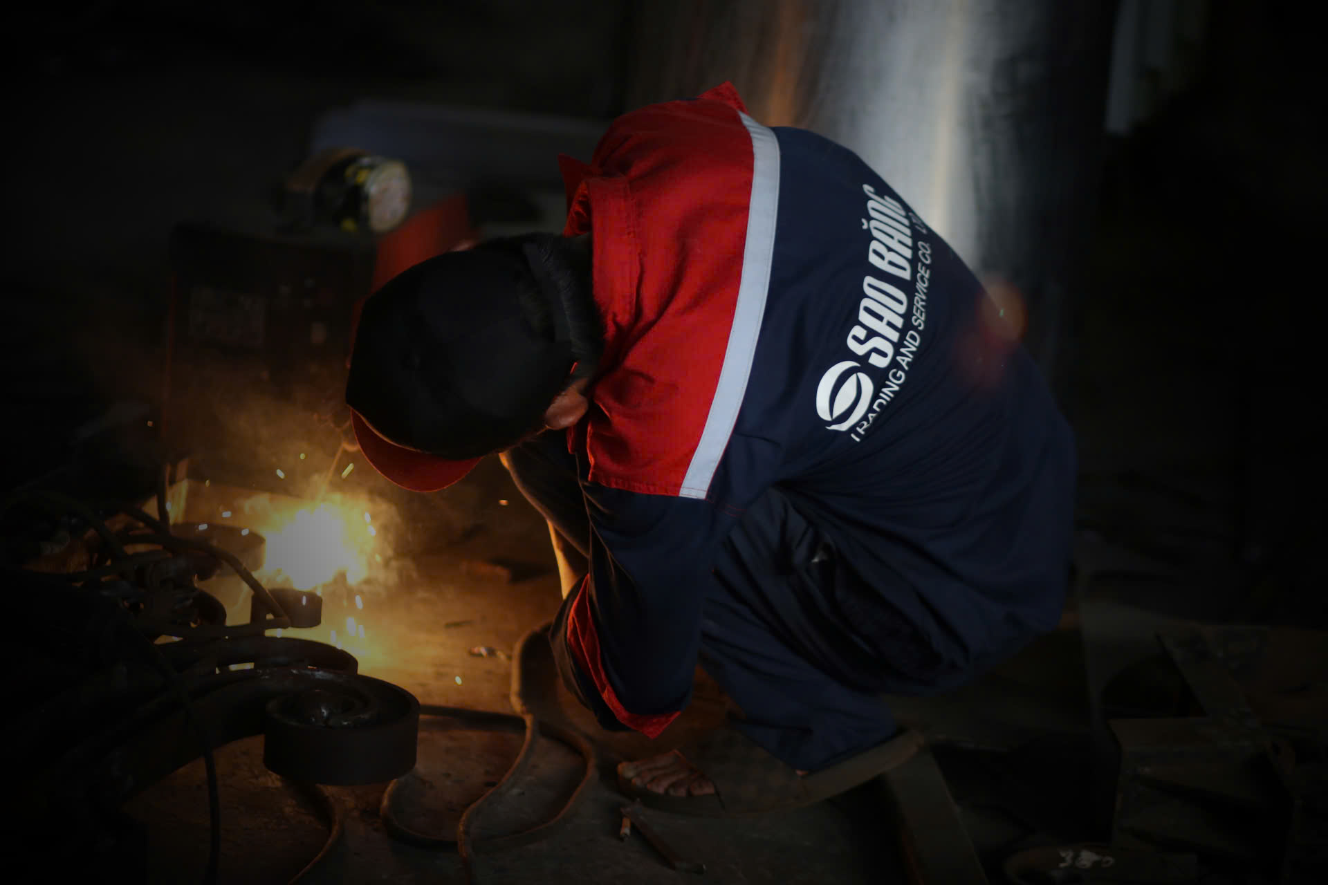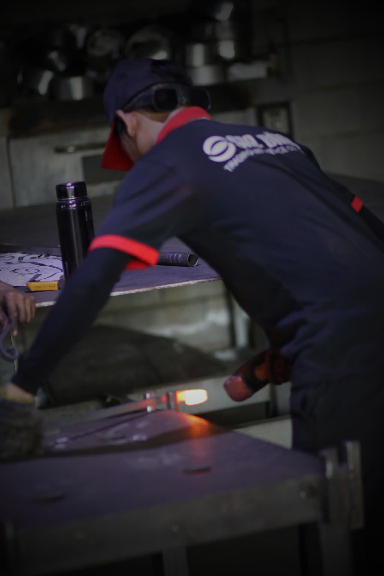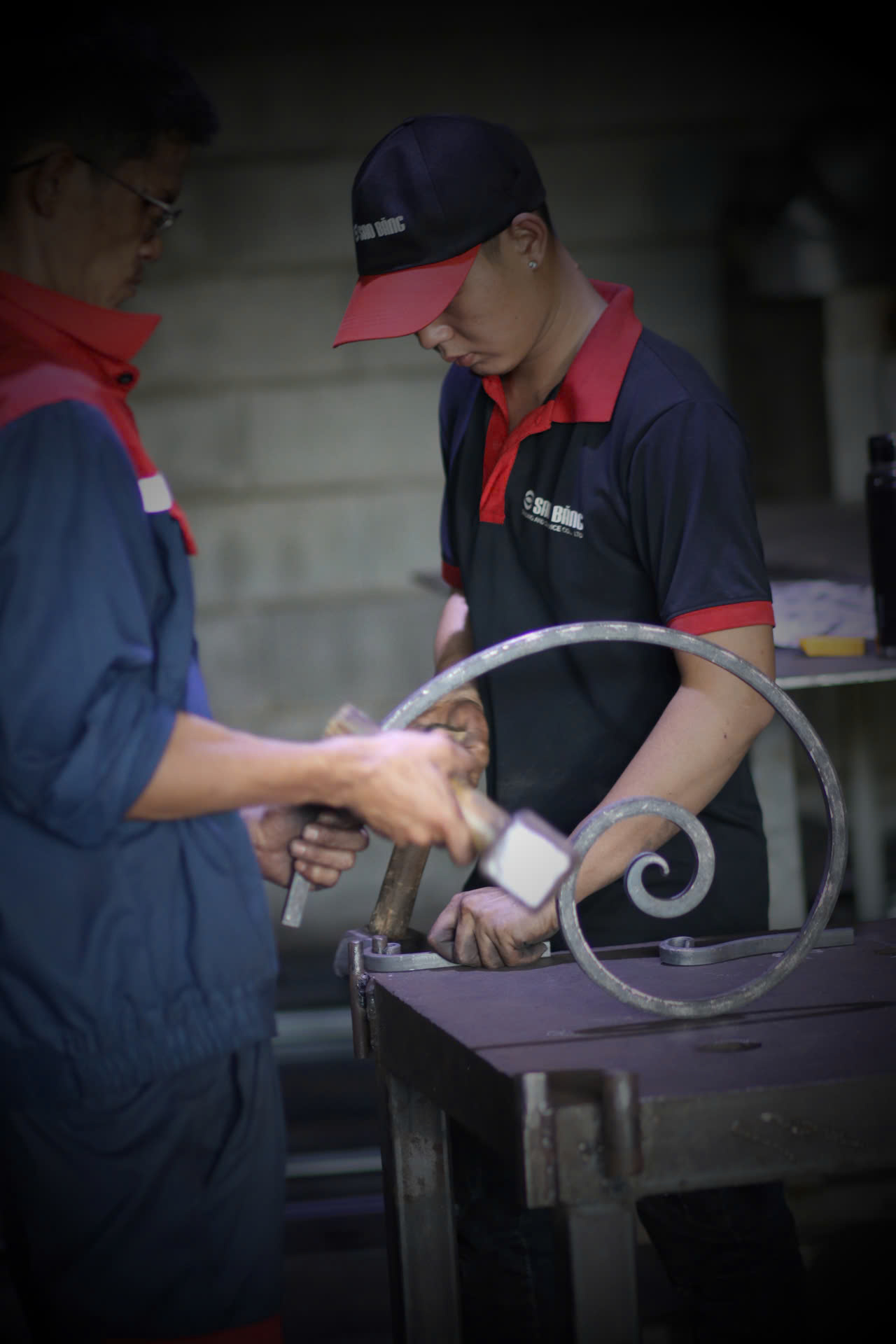 Các nghệ nhân, kỹ thuật viên tại Cơ khí Sắt Mỹ Thuật Sao Băng.